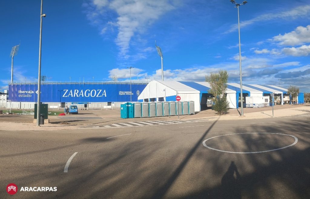 Carpa para la fan zone del Real Zaragoza en el Ibercaja Estadio