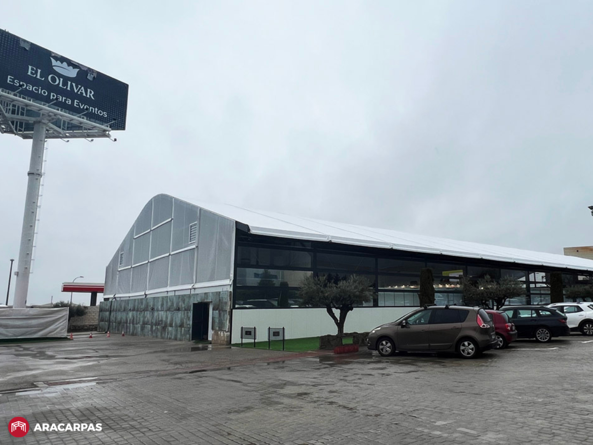 En este contexto, Aracarpas ha llevado a cabo la fabricación e instalación de una carpa de eventos “premium” de 30×70 metros en el Complejo El Olivar, en Alcalá de Henares. Se trata de una solución diseñada específicamente para acoger eventos de gran formato, con una clara apuesta por la calidad constructiva y el detalle.